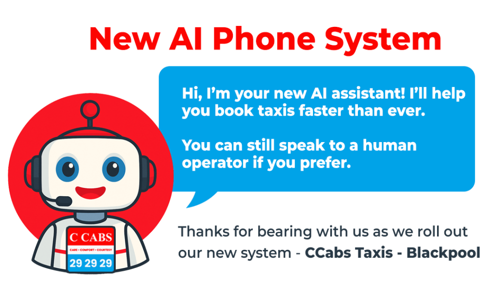 CCabs phone number 29 29 29 - Blackpool taxi booking